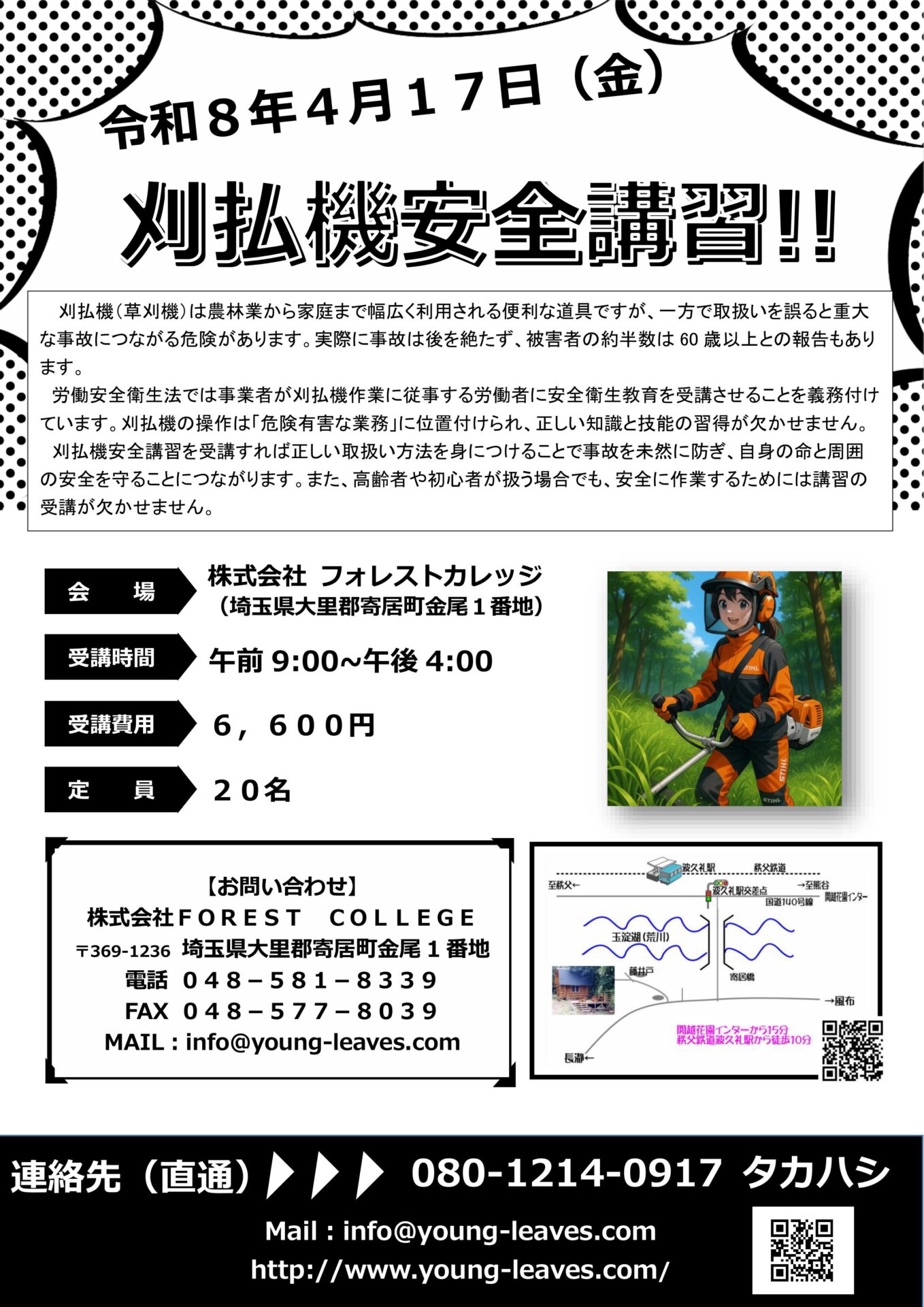 フォレストカレッジでは、令和8年4月コース「刈払機安全衛生講習」を開催します。