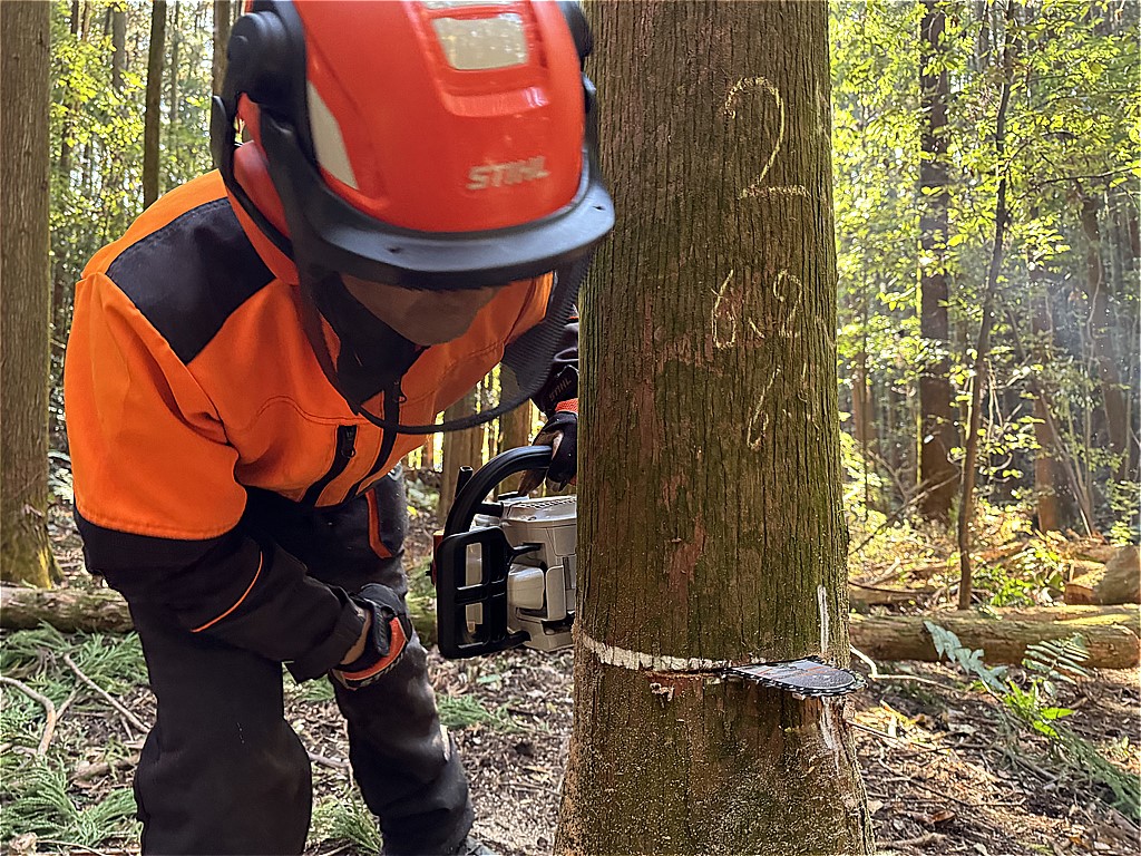 埼玉県小川町の実習地で最後の伐倒(おいづる式)と