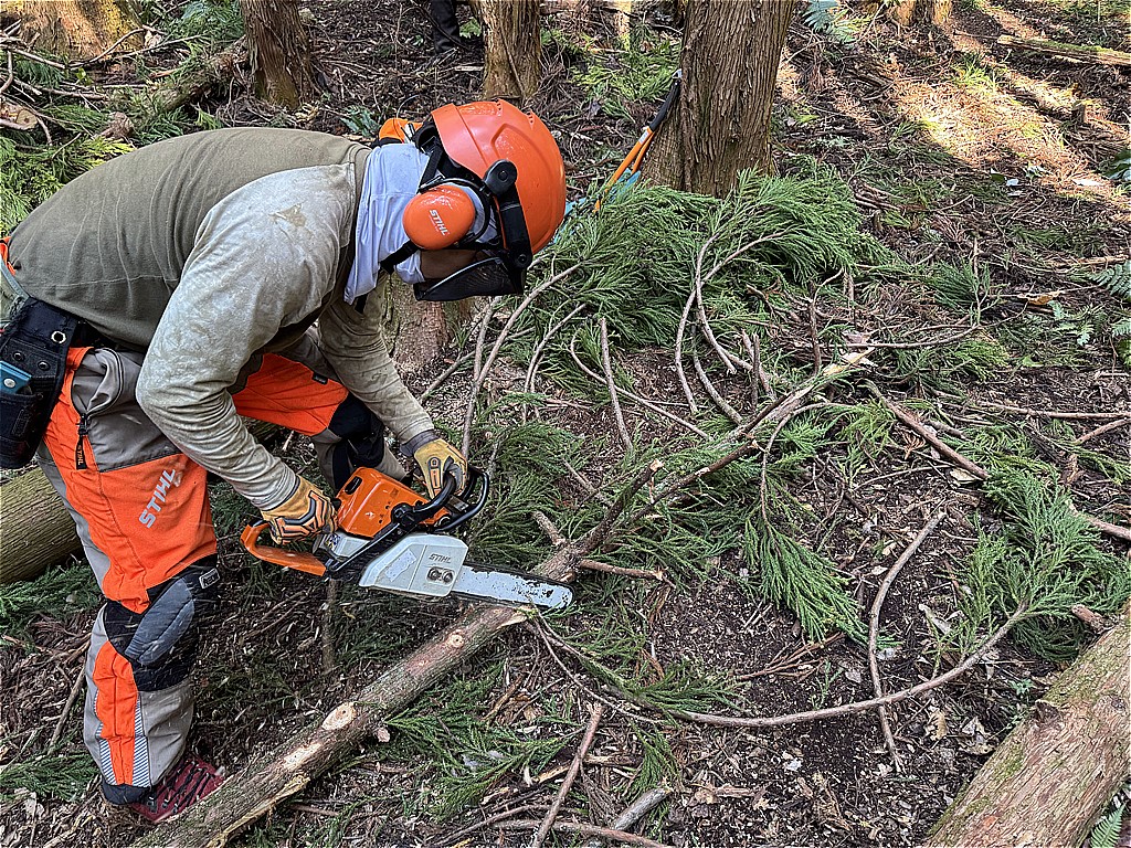 倒した木一本一本に向き合い、時間をかけて枝を払います。